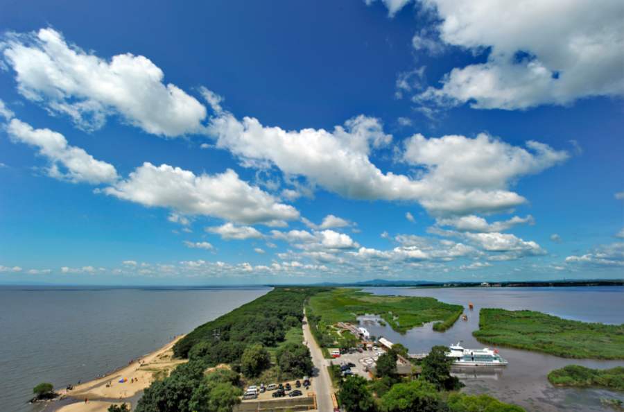 - 三江平原上的抚远县,是中国最东边的一个县,被称为祖国最先迎接朝霞的地方。这里水面辽阔,黑龙江和乌苏里江环绕该县北、东边境,并在东北角汇流而形成三角洲(俗称黑瞎子岛)。这里是国内鲟、鳇鱼的最大产地和最大的鲑鱼场。鲑鱼又名大马哈鱼,最高年产达1800多吨。鲢鱼数量更多。